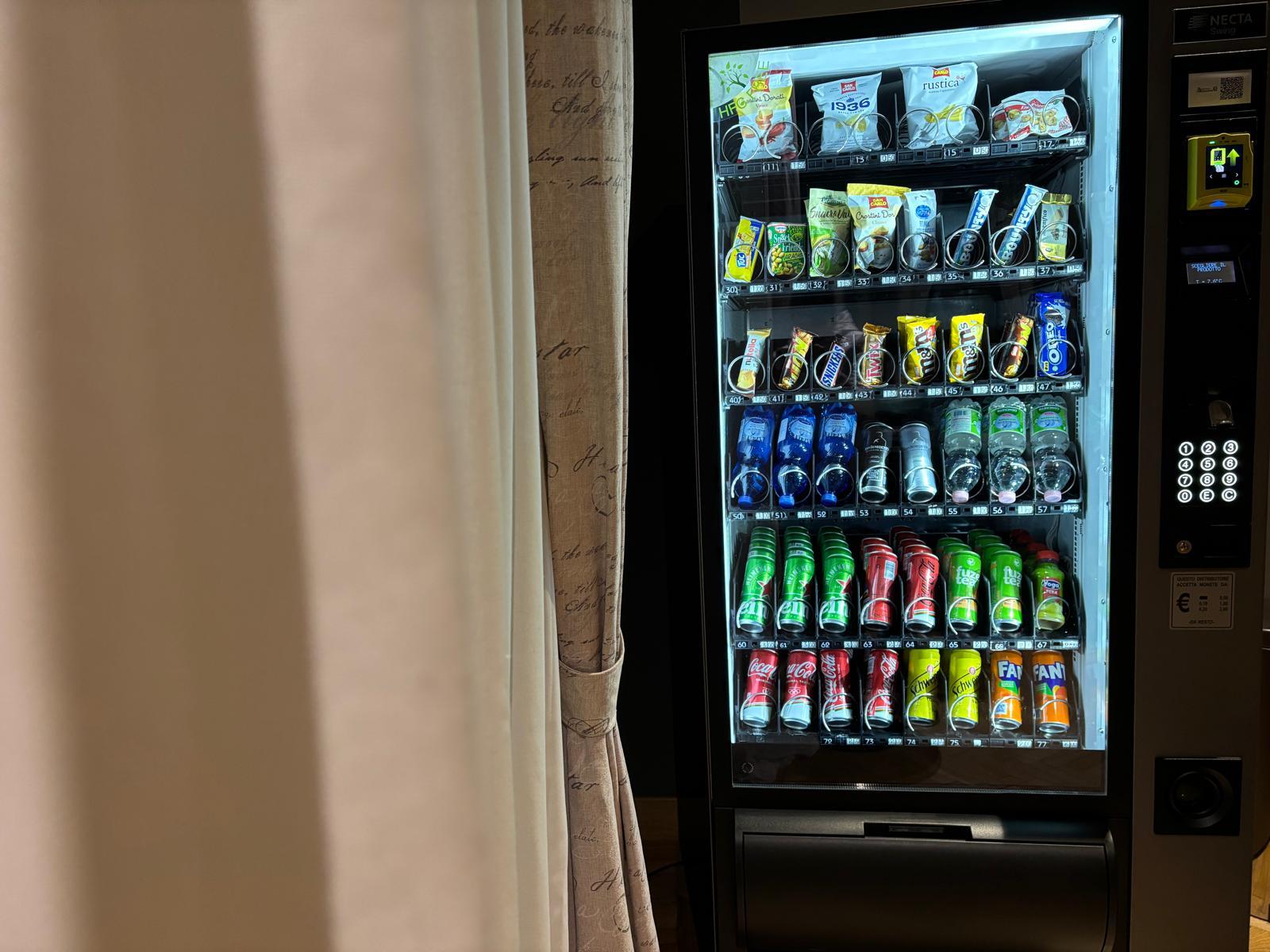 Nella hall della struttura è presente un comodo distributore automatico 🥤🍫 con una selezione di snack e bevande, sempre a disposizione dei nostri ospiti. Ideale per una pausa veloce o uno spuntino in qualsiasi momento della giornata, per rendere il vostro soggiorno ancora più pratico e piacevole ✨.